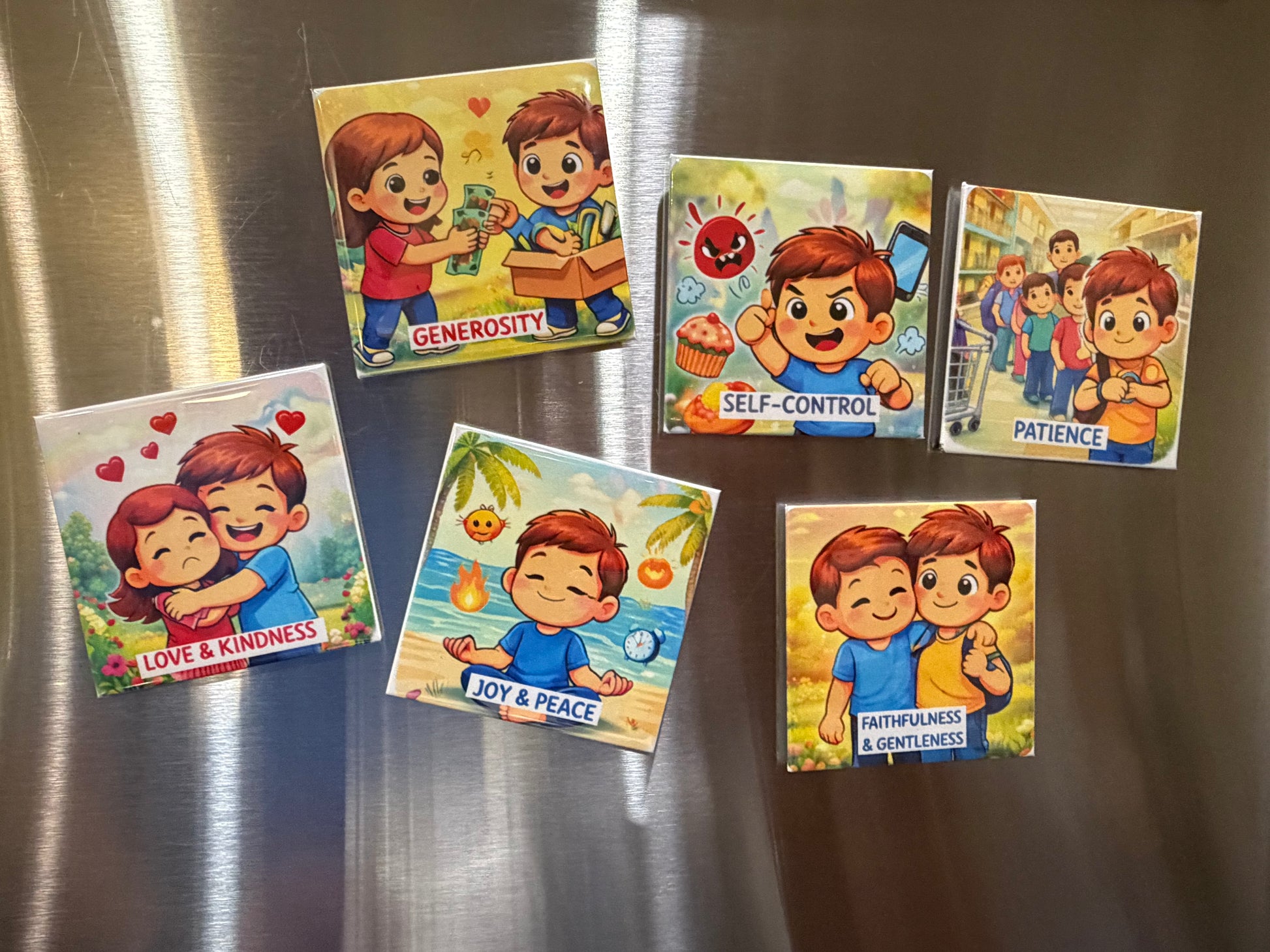 Fruits of the Spirit – Set of 6 Faith Magnets-(2.5” × 2.5”)